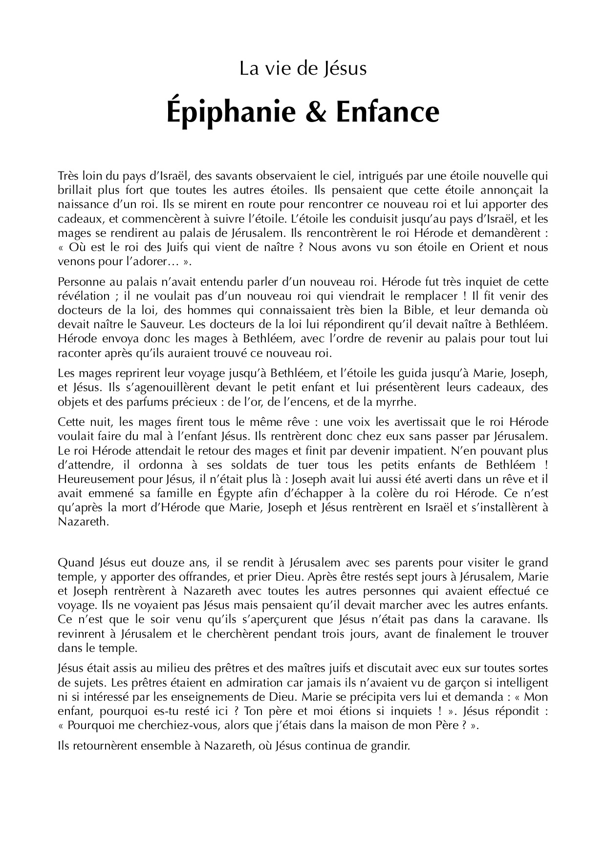 La vie de Jésus - Enfance